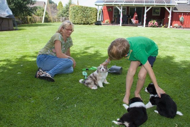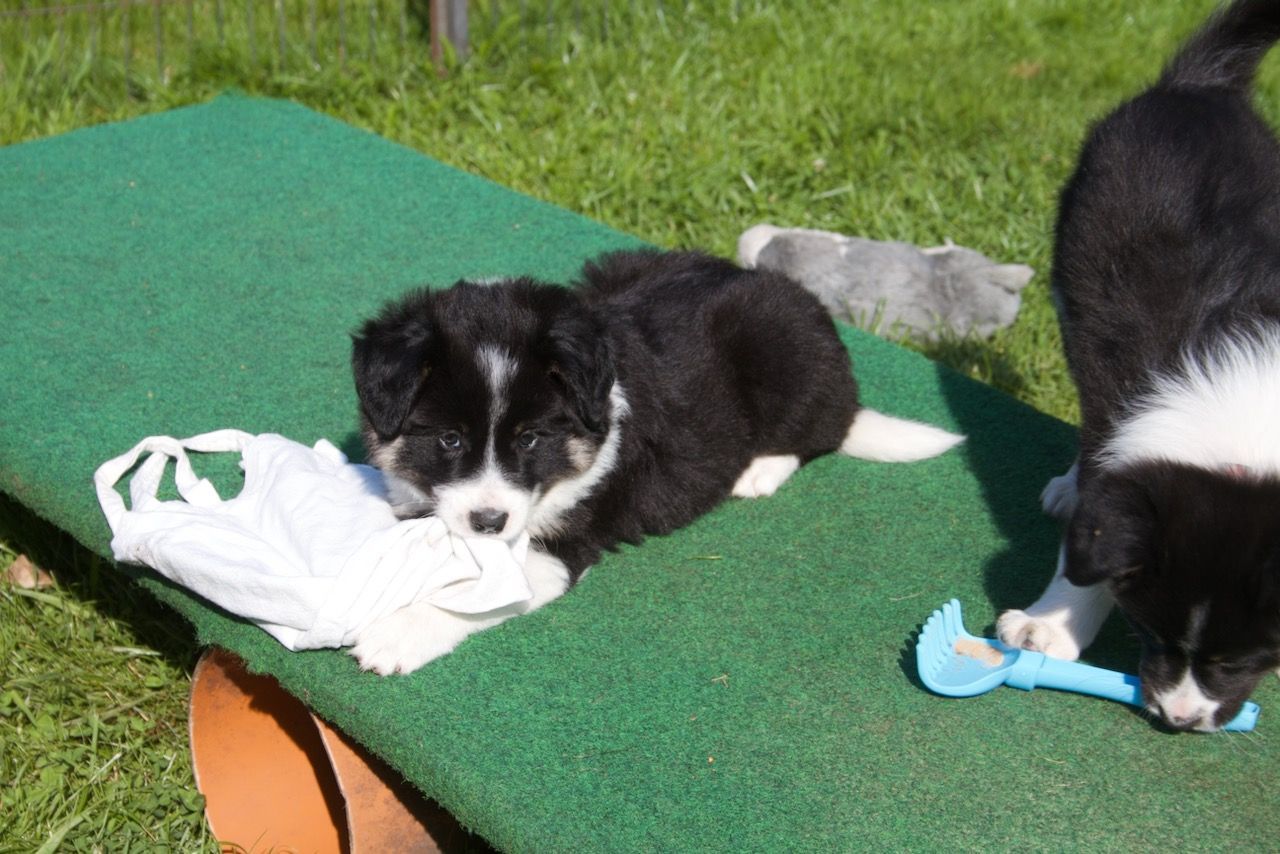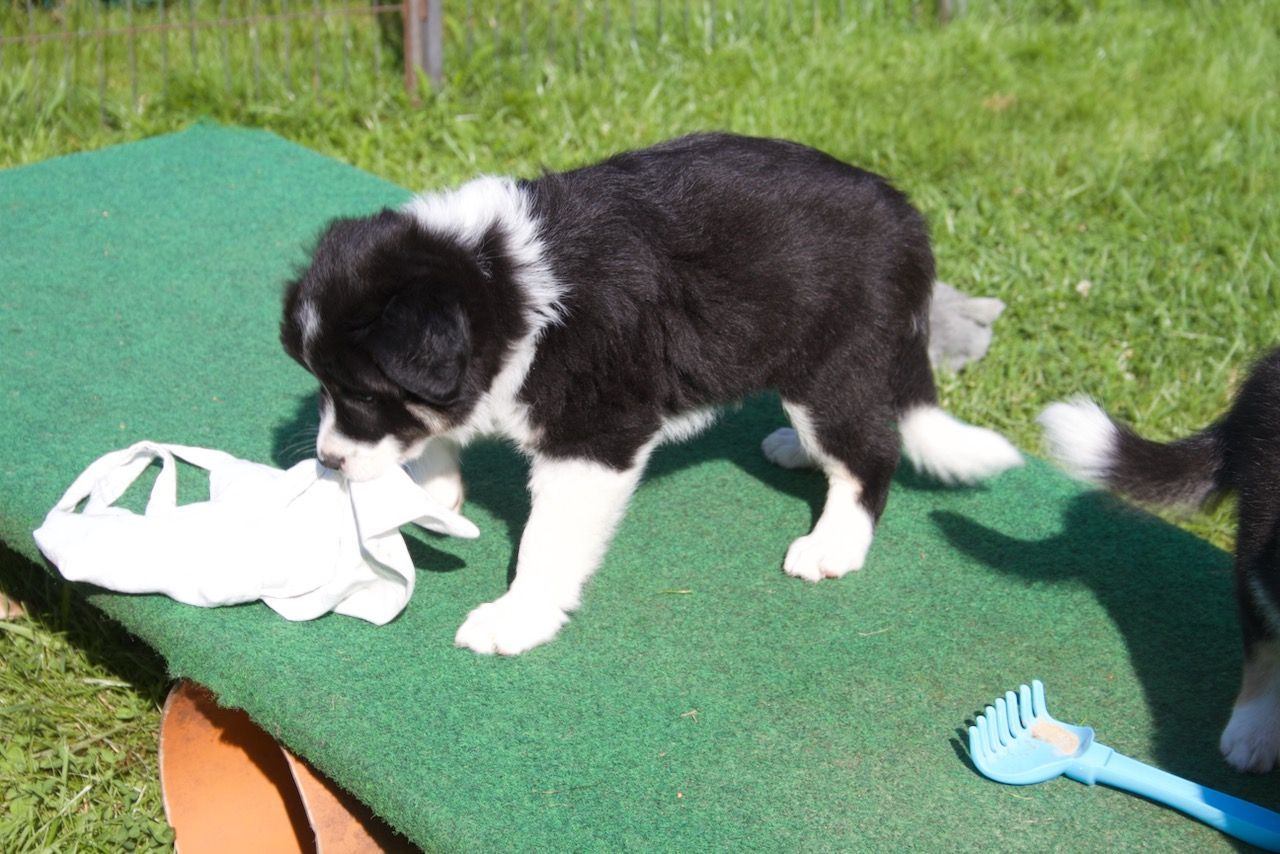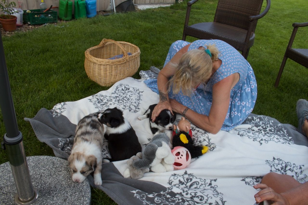 Juli Die Welpen fahre alle 3 Tage im Auto mit und erkunden so unterschiedliche Gärten, Feld, Wald und Flur.