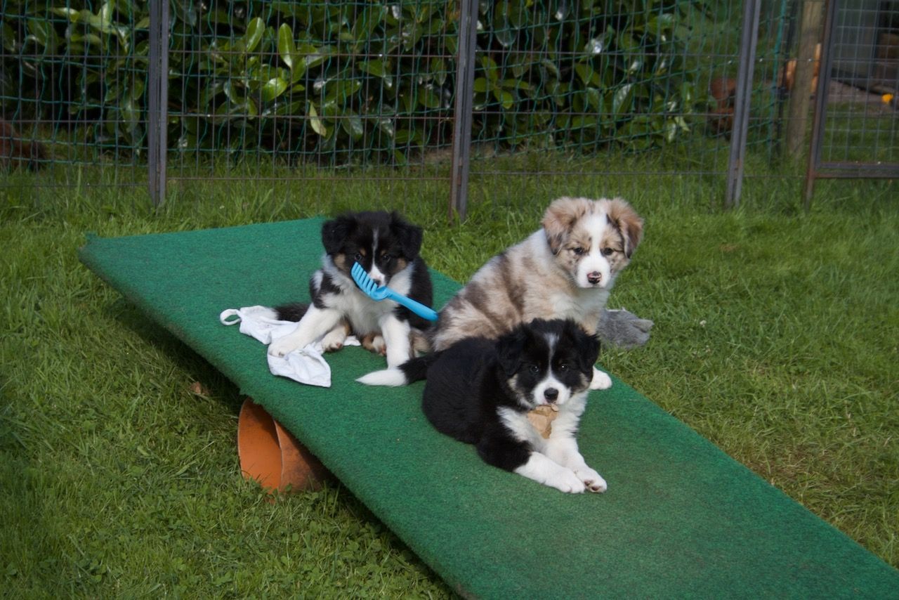 Seit der 6. Woche tragen sie Halsbänder, die haben sie gar nicht wahr genommen, die drei sind so cool!