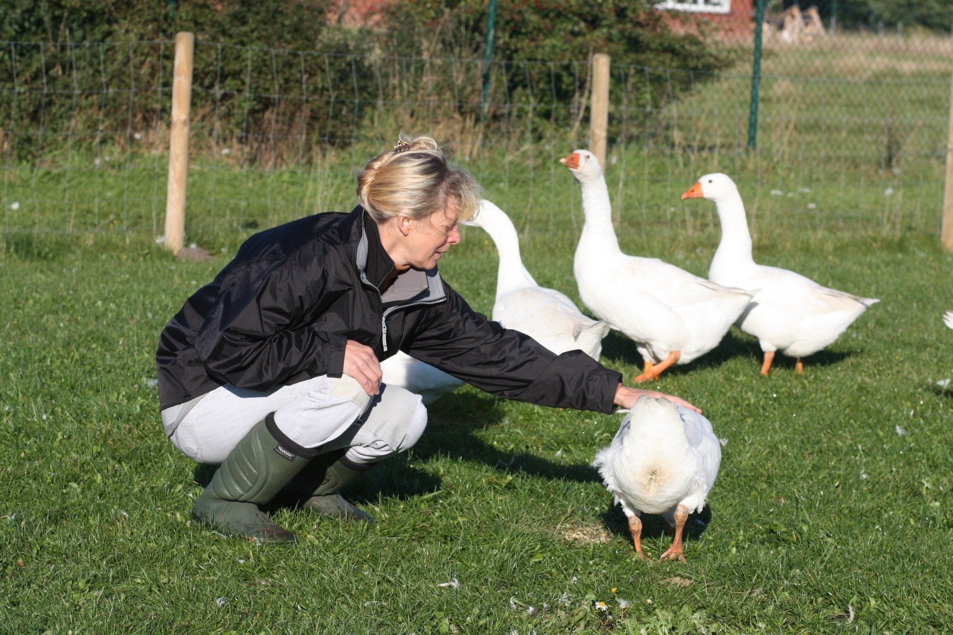 Zu unserem Elternhaus gehörte eine Weide von 10,000 qm und nachdem meine Mutter die Pferdezucht aufgegeben hatte, bot sich das halten von Schafen an. Die ersten Schwarzkopf gehörten einem Freund und da war dann noch Platz für meine Gänse.